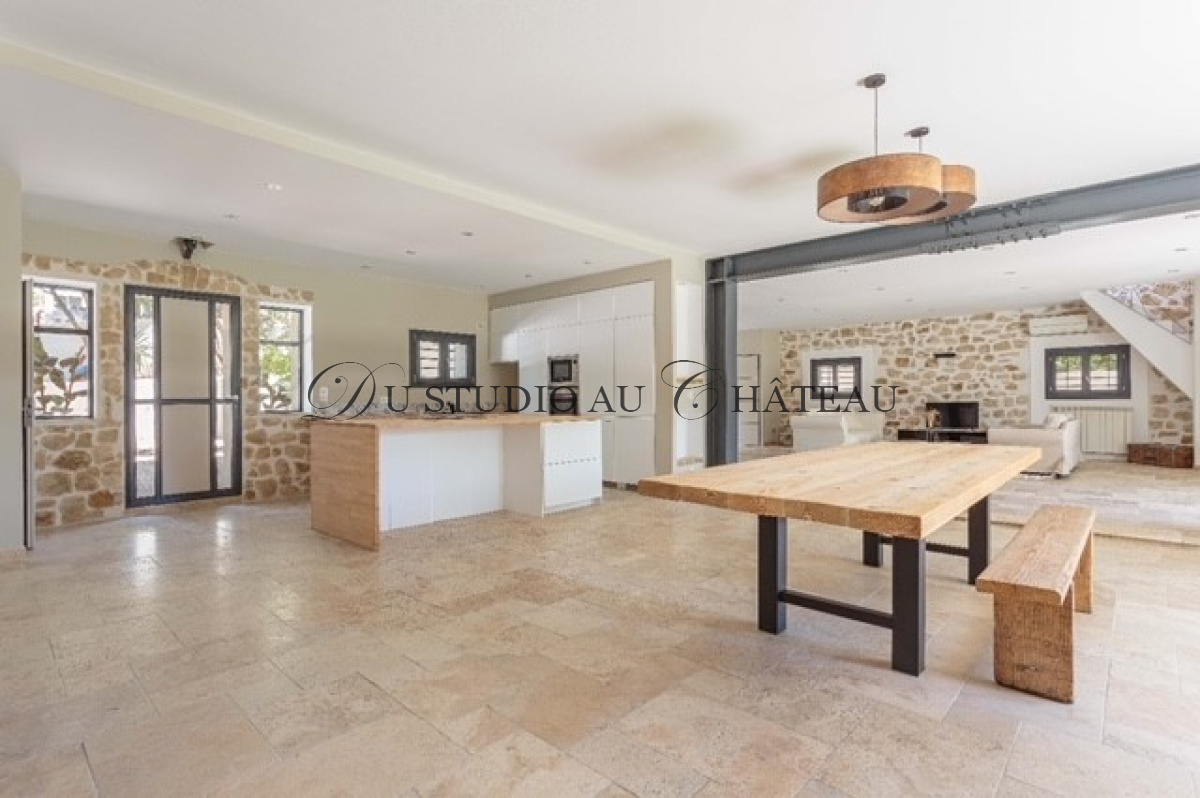 Superbe GRANDE MAISON DE VILLE ancienne - atmosphère ZEN CONTEMPORAINE en pierres de 340 M² à 10 minutes Aix Nord à pied du centre-ville, rénovée avec harmonie et authenticité, quartier calme et privilégié, espace de réception de 120 M² (salon, salle à manger, cuisine neuve avec ilot central), ouvrant sur une belle terrasse orientée sud,