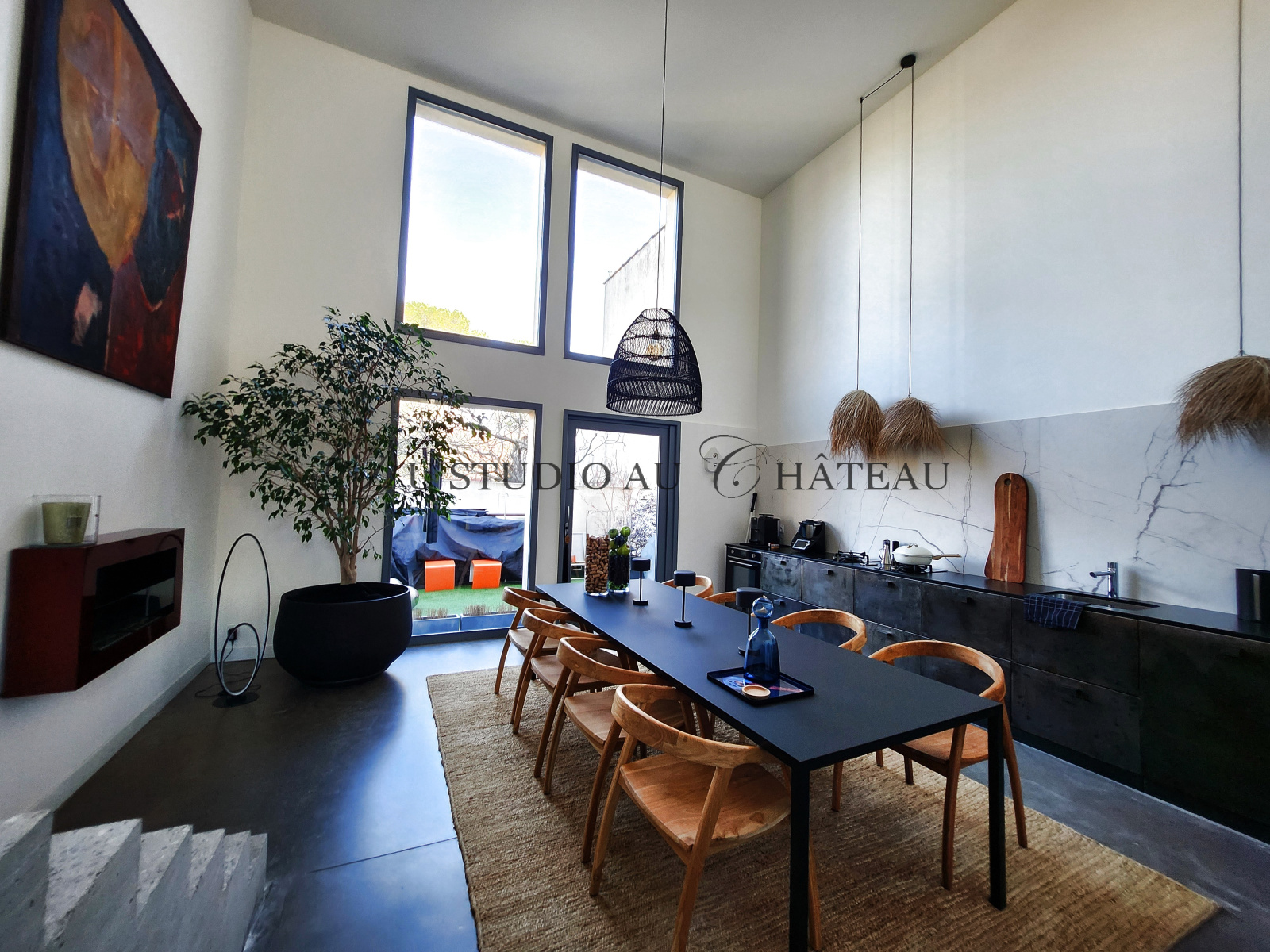 IDEALE ACTIVITE PROFESSIONNELLE exceptionnelle maison de ville Saint Maximin 200 M² incluant le garage, cuisine dînatoire équipée, grand standing aux prestations très haut de gamme, très belle luminosité et plafond "cathédrale", atmosphère ZEN,